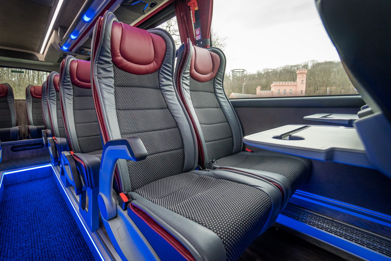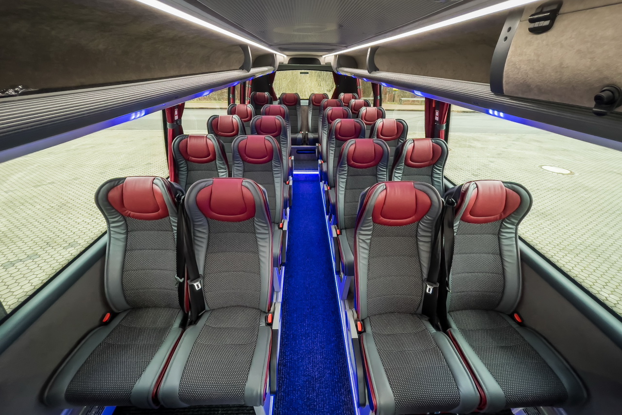Unser Fuhrpark besteht aus modenrnen Bussen der Marke Mercedes Atomic und Iveco in unterschiedlichen Größen und Konfigurationen. Zu den Highlights der Ausstattungsmerkmale gehören unter anderem: